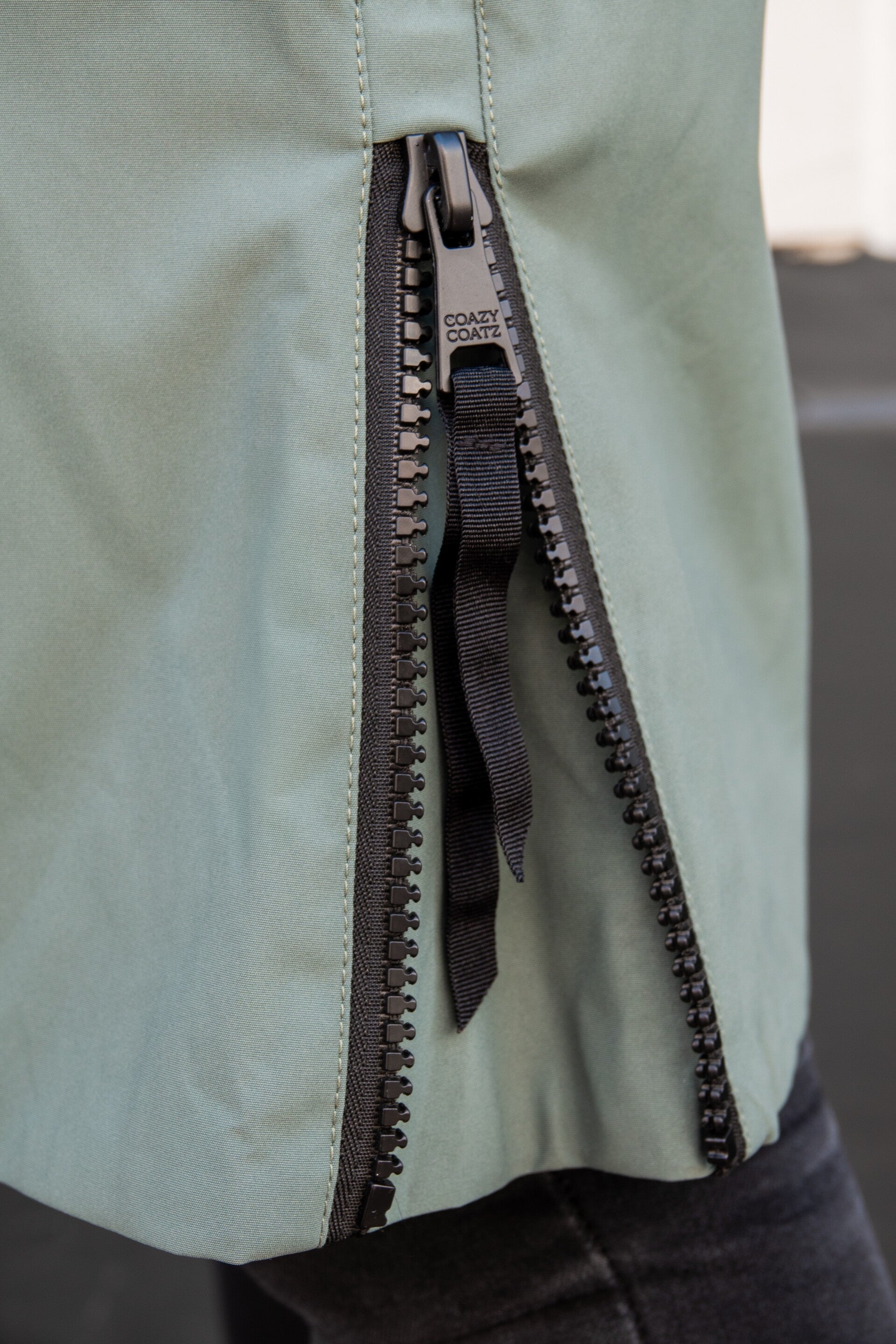 - Bewegingsvrijheid: volledige bewegingsvrijheid door de sterke deelbare rits en twee zijritsen. De middelste rits kan dus van beneden naar boven, wel zo handig op de fiets of als je de auto in wilt stappen.