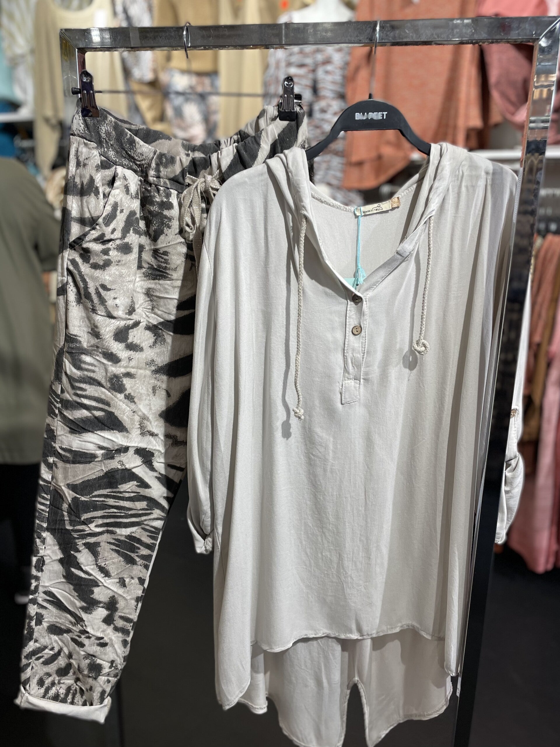 Onze fijne stretch broeken in een gave dierenprint. In vijf verschillende kleuren: jeansblauw, legergroen, caramel (derde van links op de foto), camel en beige. Ze zijn one size, draagbaar van maat 38 t/m 46.