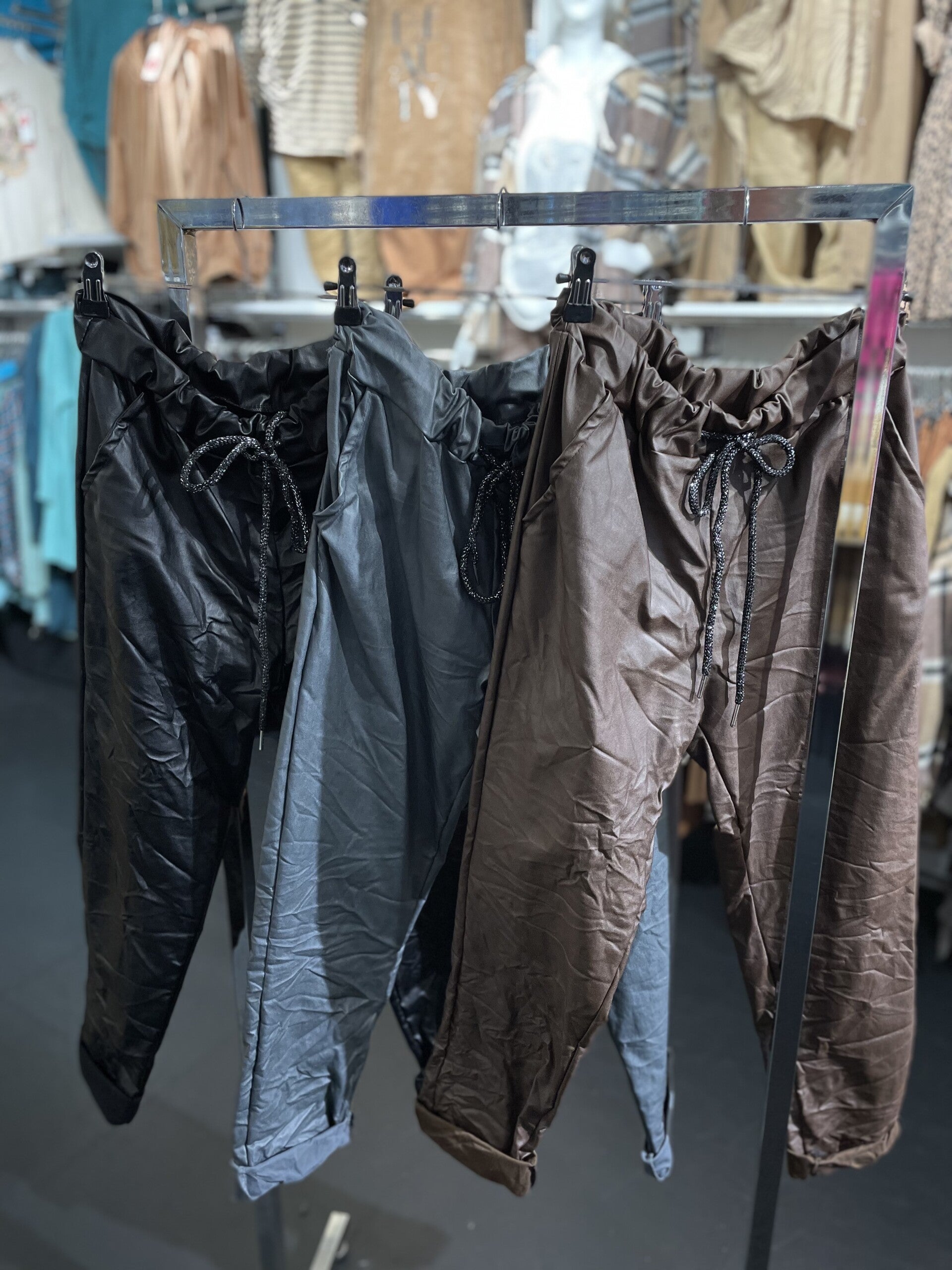 De broek die je overal op het moment ziet. De stretchy lak broeken. Ze zijn one size, draagbaar t/m maat 42/44.